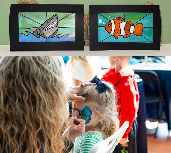 Join in the fun with certified makeup artist, Lisa McCann, for Face Painting, Glitter Tattoos, and “Kid-Friendly” Faux Stained Glass Art!